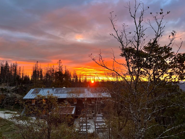 Im Nebensteinschutzhaus des österreichischen Alpenvereins war es dann wunderbar warm und auf dem Weiterweg nach Hirschenwies sogar ein bisserl sonnig. Das Gepäck wurde im Rucksack mitgetragen, denn das ist eine Philosophie der Wanderung, dass man mit möglichst kleinem Fußabdruck unterwegs ist. Man braucht erstaunlich wenig, wenn man es tragen muss. Um das zu erfahren, muss man es allerdings probieren und man stellt fest, dass es sehr befreiend ist.